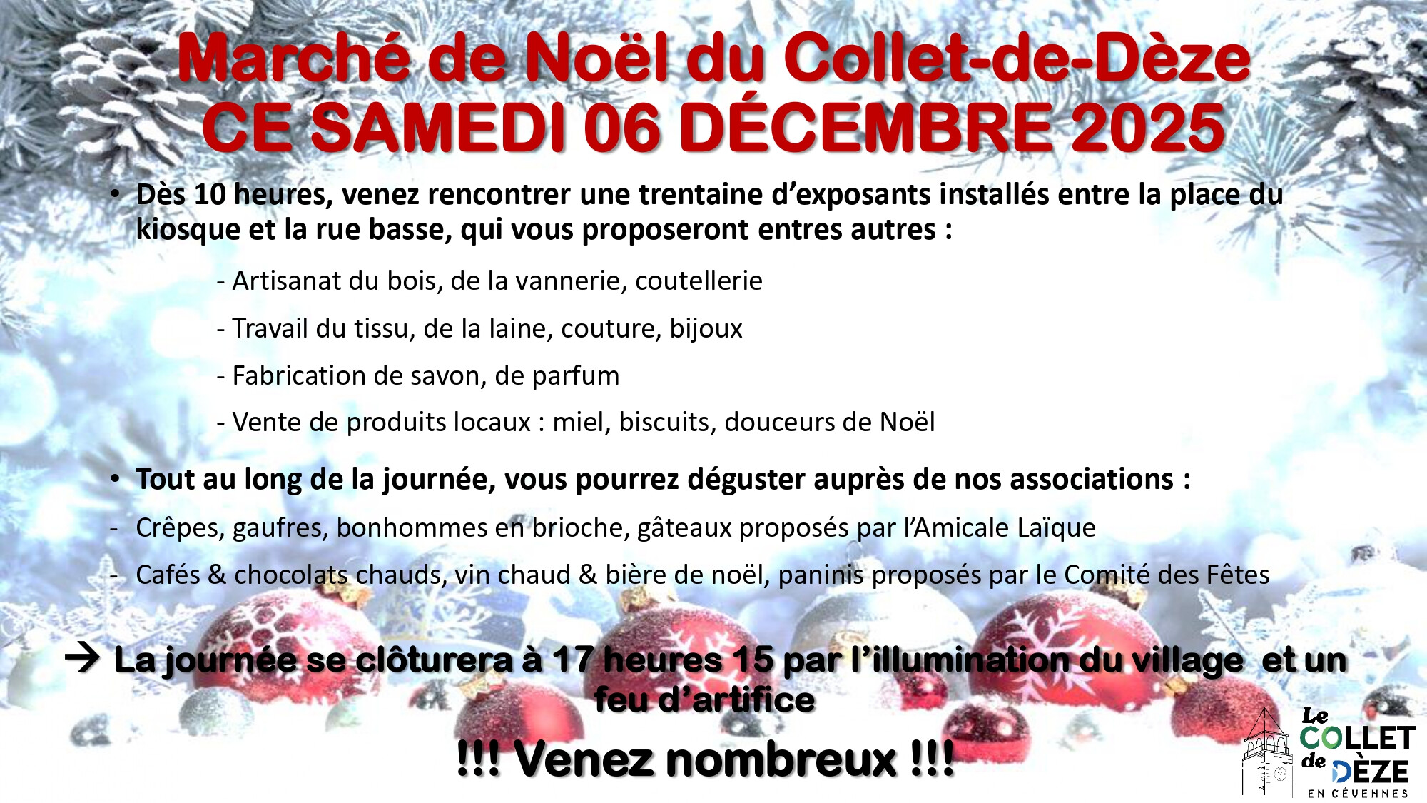 Cette animation clôturera le marché de Noël qui aura lieu tout au long de la journée