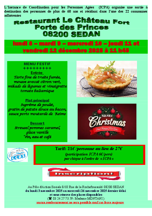 Lundi 8 - Mardi 9 - mercredi 10 -Jeudi 11 et Vendredi 12 Décembre 2025 à 11h45 (au choix).