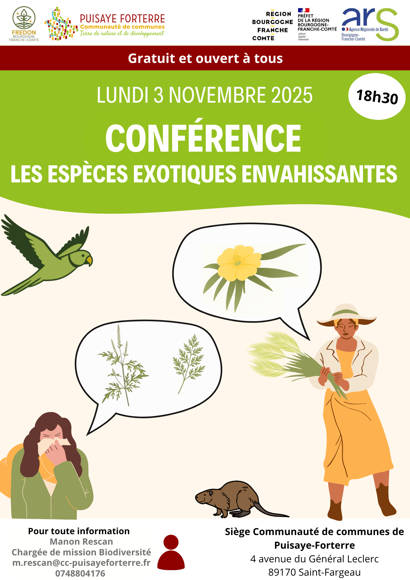 CONFERENCE : LES ESPECES EXOTIQUES ENVAHISSANTES, UN ENJEU POUR NOTRE BIODIVERSITE LOCALE