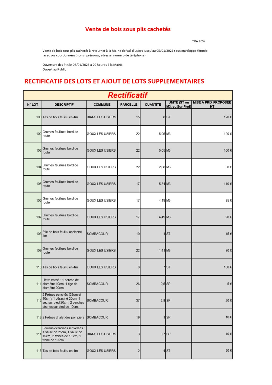 Ouverture des plis le 6 janvier 2026 à 20h à la mairie de "Goux".