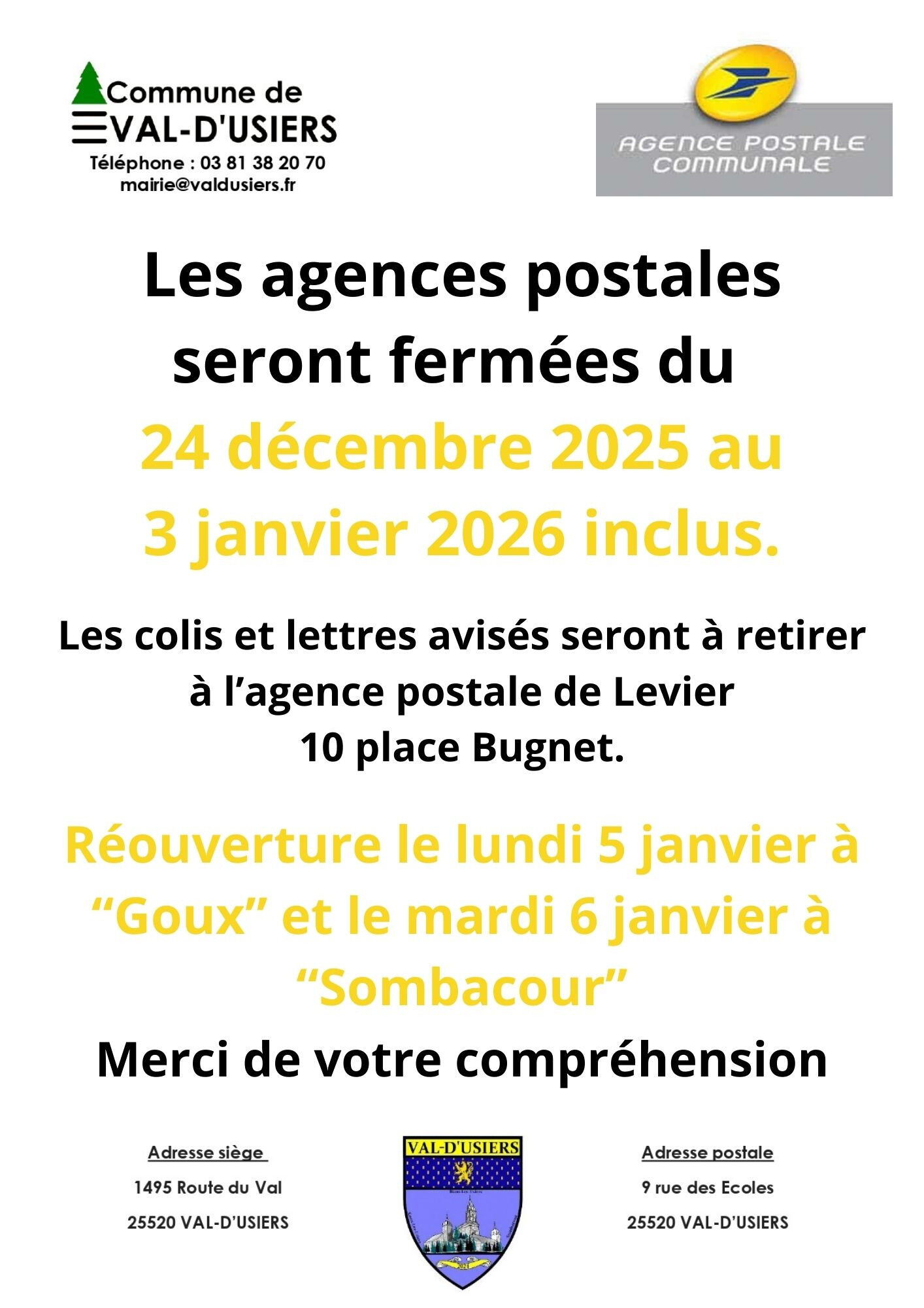 Merci de déposer vos enveloppes fermées à la maire de "Goux" avant le 5 janvier 2026.
