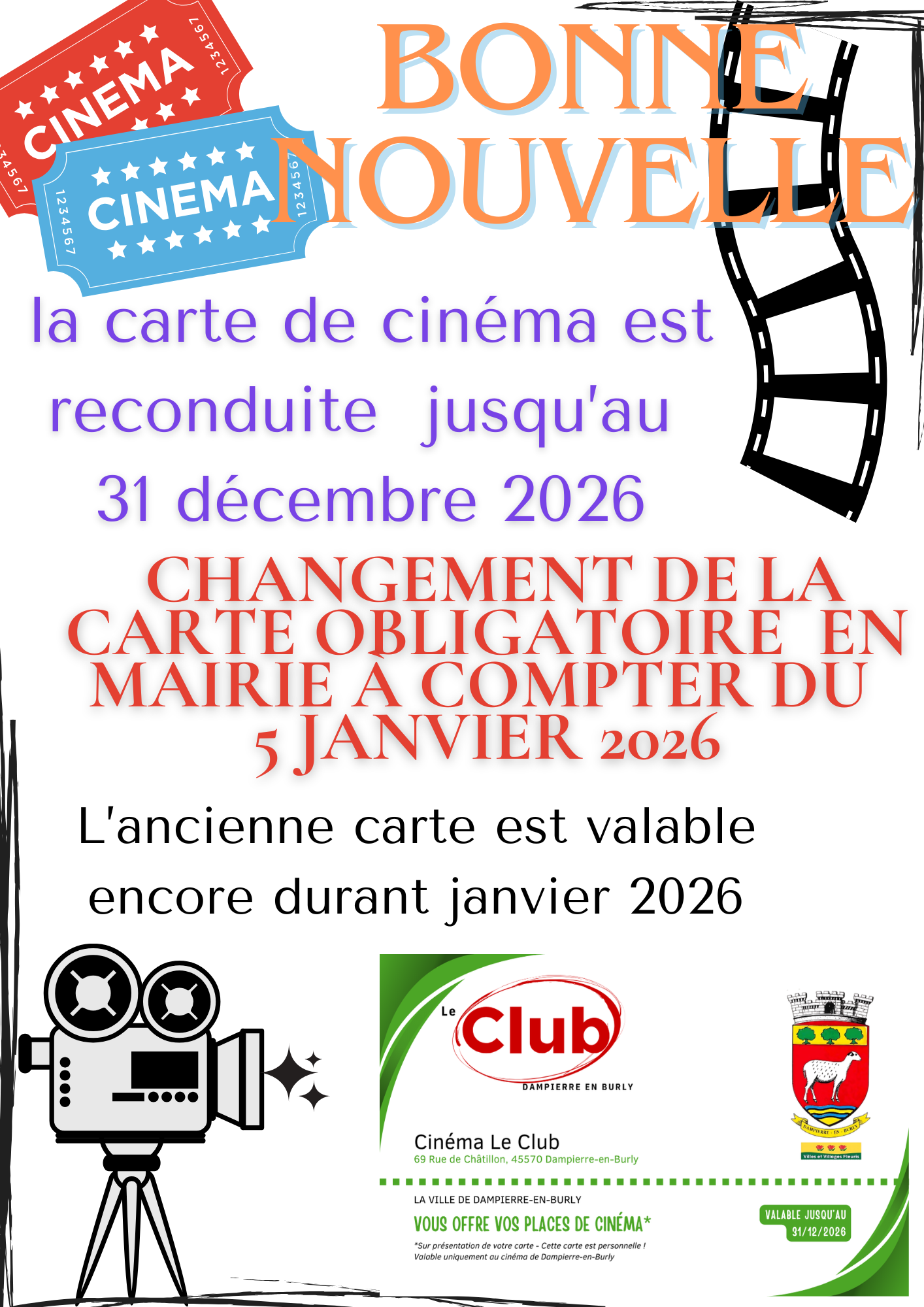 Suite à un incident électrique ayant endommagé le matériel de projection, nous sommes malheureusement contraints de suspendre temporairement l’ensemble des séances du cinéma, dans l’attente de l’intervention d’un technicien prévue début février.