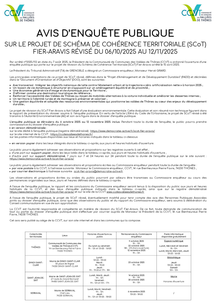 Du 6 octobre au 12 novembre, participez à l’enquête publique sur le projet de révision du Schéma de Cohérence Territoriale (SCOT) Fier-Aravis.