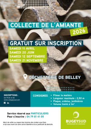 La communauté de communes Bugey-Sud réitère son service de récupération de l’amiante pour les particuliers en 2026 en déchetterie de BELLEY.