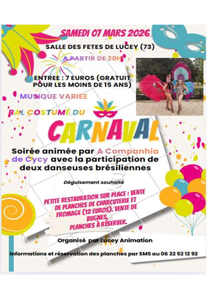 Soirée bal costumé organisée, par Lucey Animation, à la salle des fêtes de Lucey le 07 mars à partir de 20h.