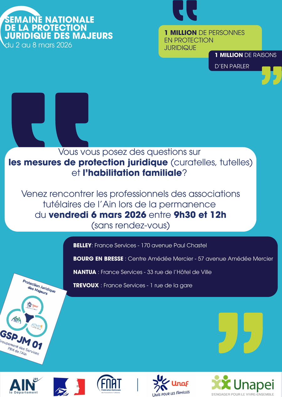 Ils répondront aux questions du public concernant les mesures de protection juridique (curatelle, tutelle) et/ou l’habilitation familiale.