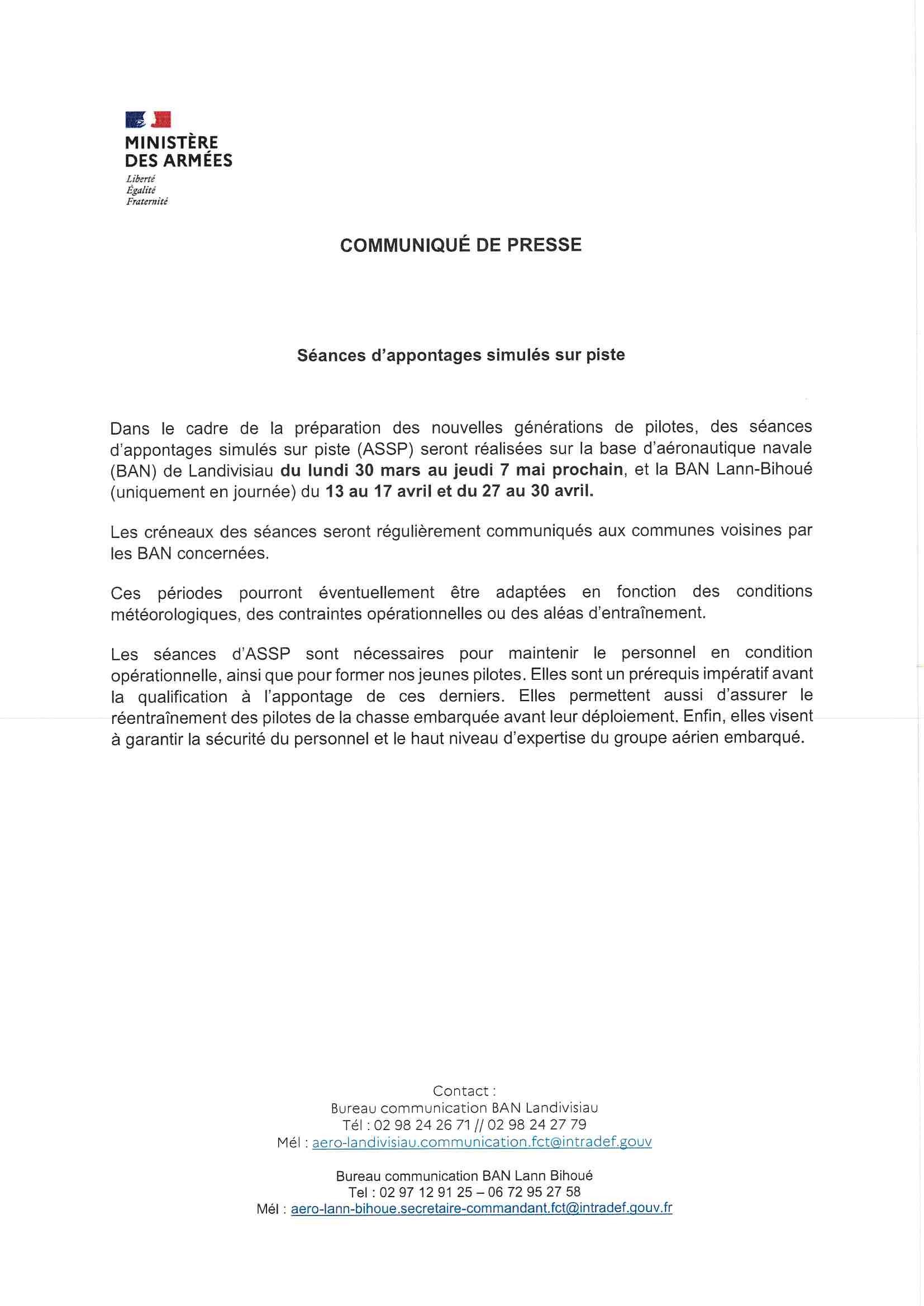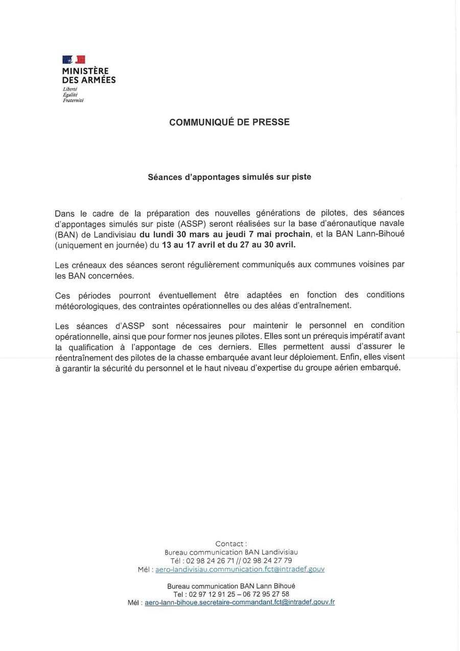 Le commandant de la base d’aéronautique navale de Landivisiau souhaite vous informer de l’activité aérienne modifiée de ce mardi :