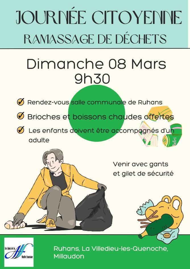 VENEZ NOMBREUX A LA JOURNEE CITOYENNE DU 8 MARS POUR LE NETTOYAGE DU VILLAGE ORGANISEE PAR L'ASSOCIATION DES AMIS DE LA VIEILLE FONTAINE.