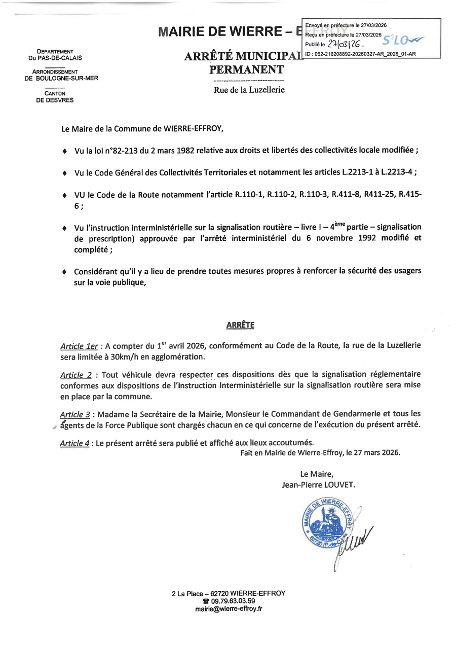 Place de la Mairie 62720 Wierre-Effroy