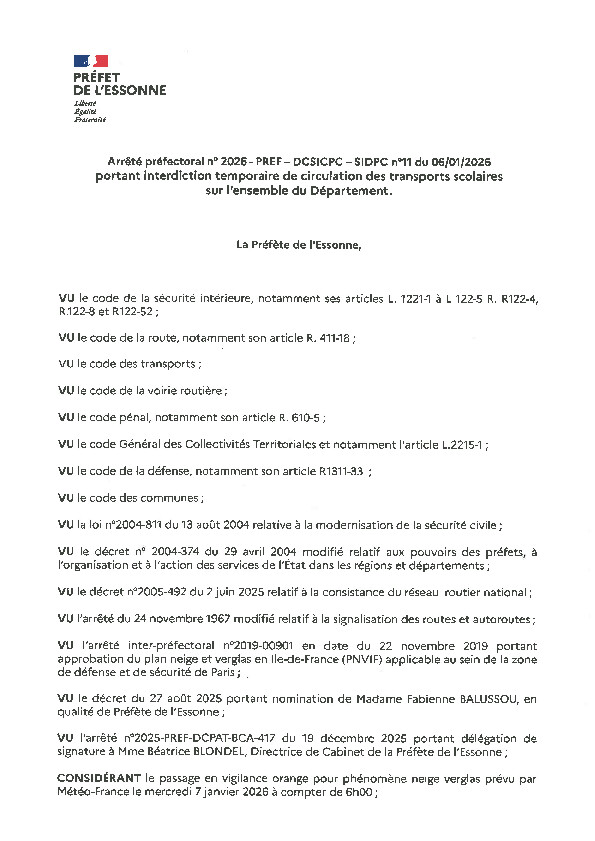 les transports scolaires sont suspendus pour la journée du mercredi 7 janvier 2026