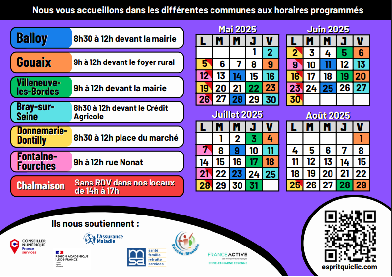 Ce calendrier est également accessible en ligne sur le site internet via le lien : https://www.espritquiclic.com/calendrier/