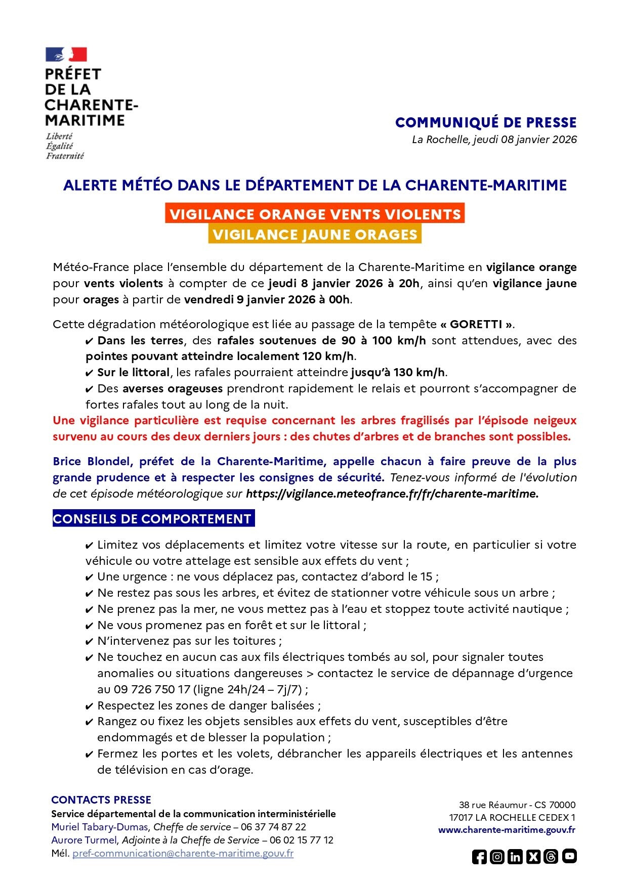 🇫🇷 𝘓𝘦 𝘱𝘳𝘦́𝘧𝘦𝘵 𝘥𝘦 𝘭𝘢 𝘊𝘩𝘢𝘳𝘦𝘯𝘵𝘦-𝘔𝘢𝘳𝘪𝘵𝘪𝘮𝘦, 𝘉𝘳𝘪𝘤𝘦 𝘉𝘭𝘰𝘯𝘥𝘦𝘭, 𝘢𝘱𝘱𝘦𝘭𝘭𝘦 𝘤𝘩𝘢𝘤𝘶𝘯 𝘢̀ 𝘭𝘢 𝘱𝘭𝘶𝘴 𝘨𝘳𝘢𝘯𝘥𝘦 𝘱𝘳𝘶𝘥𝘦𝘯𝘤𝘦 𝘦𝘵 𝘢𝘶 𝘴𝘵𝘳𝘪𝘤𝘵 𝘳𝘦𝘴𝘱𝘦𝘤𝘵 𝘥𝘦𝘴 𝘤𝘰𝘯𝘴𝘪𝘨𝘯𝘦𝘴 𝘥𝘦 𝘴𝘦́𝘤𝘶𝘳𝘪𝘵𝘦́.