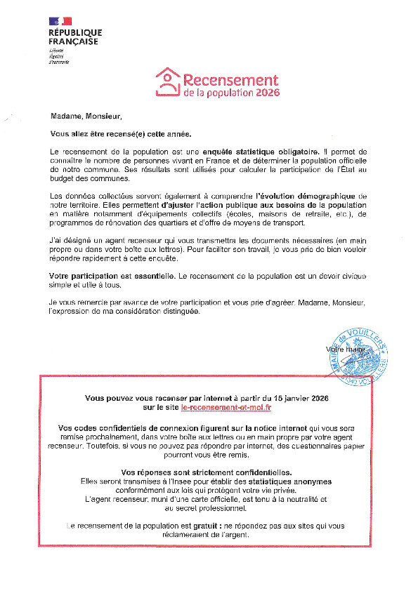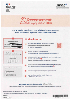Cette année, la commune de Vouillers est concernée par le recensement. Vous trouverez dans votre boîte aux lettres la notice internet.