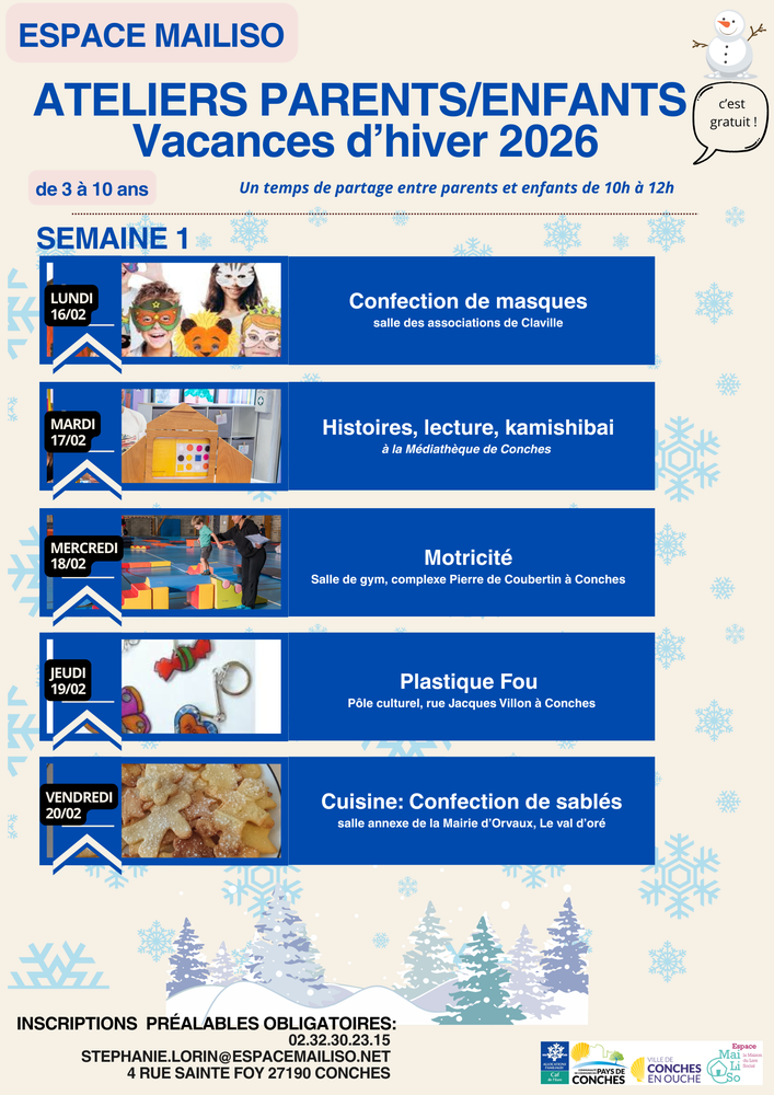 Infos & inscriptions auprès du Pôle Famille de l’Espace Mailiso.