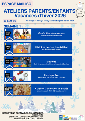Pendant les vacances d’hiver, l’Espace Mailiso propose aux familles des ateliers parents/enfants destinés aux enfants de 3 à 10 ans.