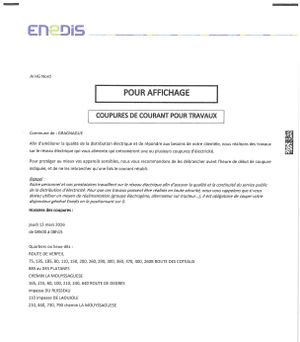 Faisant suite à la communication du 30 janvier 2026 , nous vous informons que la circulation sera interdite à la jonction du chemin de Restes et du chemin des Fusillés du bois de la Reulle, au niveau passage surplombant le ruisseau de Restes, commune de GRAGNAGUE.