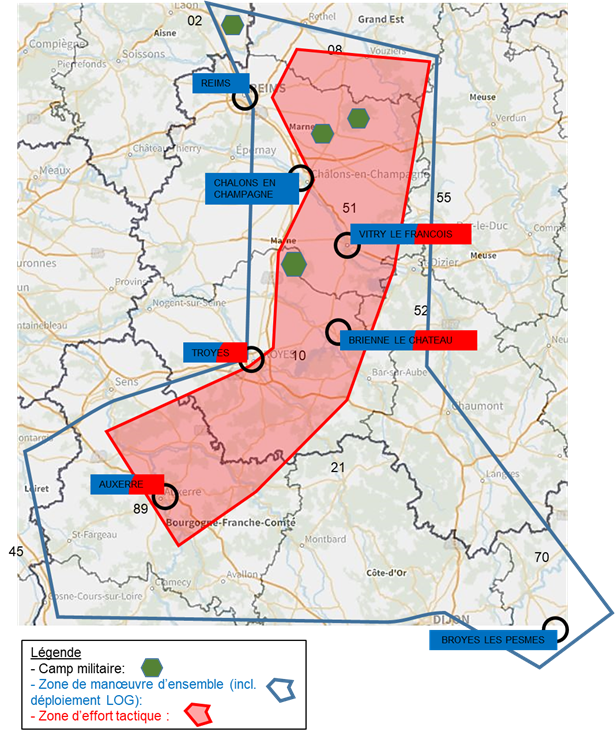 La manœuvre tactique, quant à elle, se concentrera dans l’Aube jusqu’au 25 avril, puis dans la Marne à compter du 26 avril.