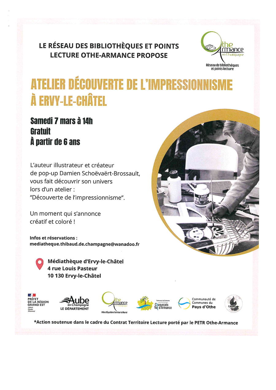 l’animation «Découverte de l’impressionnisme» du samedi 7 mars est en lien avec le spectacle «Le Jardin de la rivière» à Chessy-les-Près le samedi 28 février. N’hésitez pas à profiter de ce spectacle, avant de venir à l’animation.
