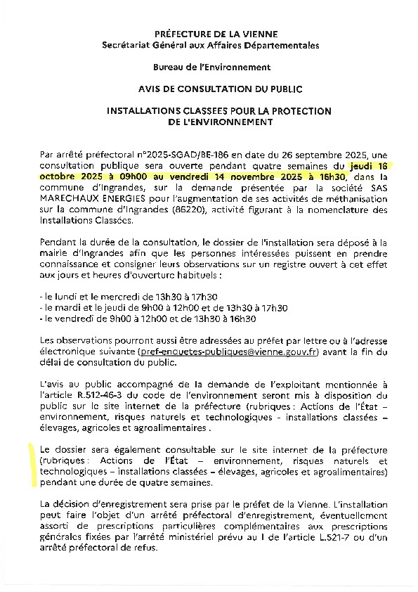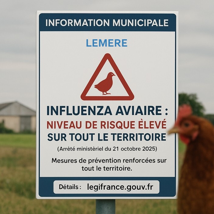 Un arrêté ministériel du 21/10/2025, qualifiant le niveau de risque élevé en matière d'influenza aviaire hautement pathogène sur l'ensemble du territoire métropolitain,