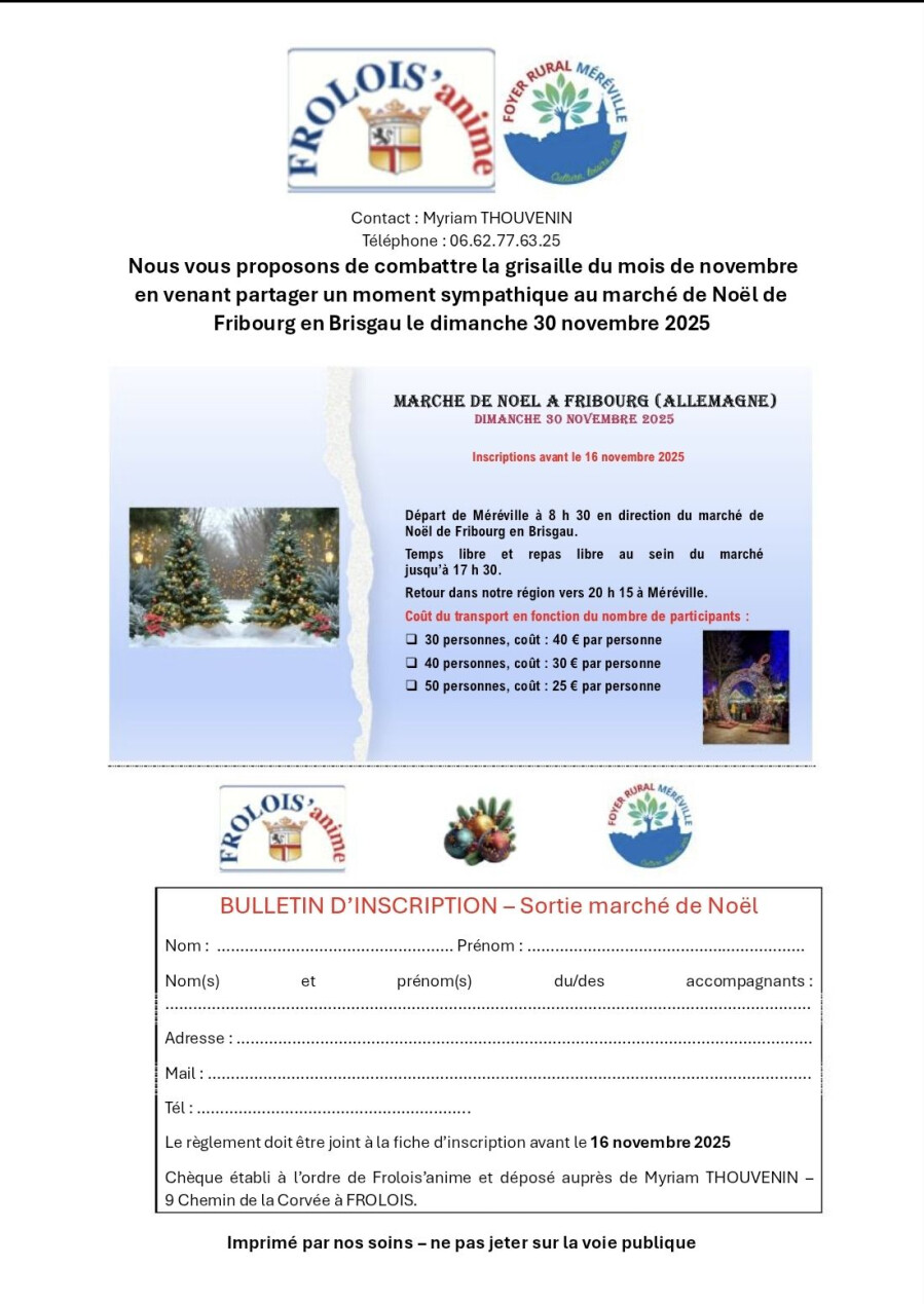 Une sortie au marché de Noël à Fribourg (Allemagne) est organisée par Frolois Anim'