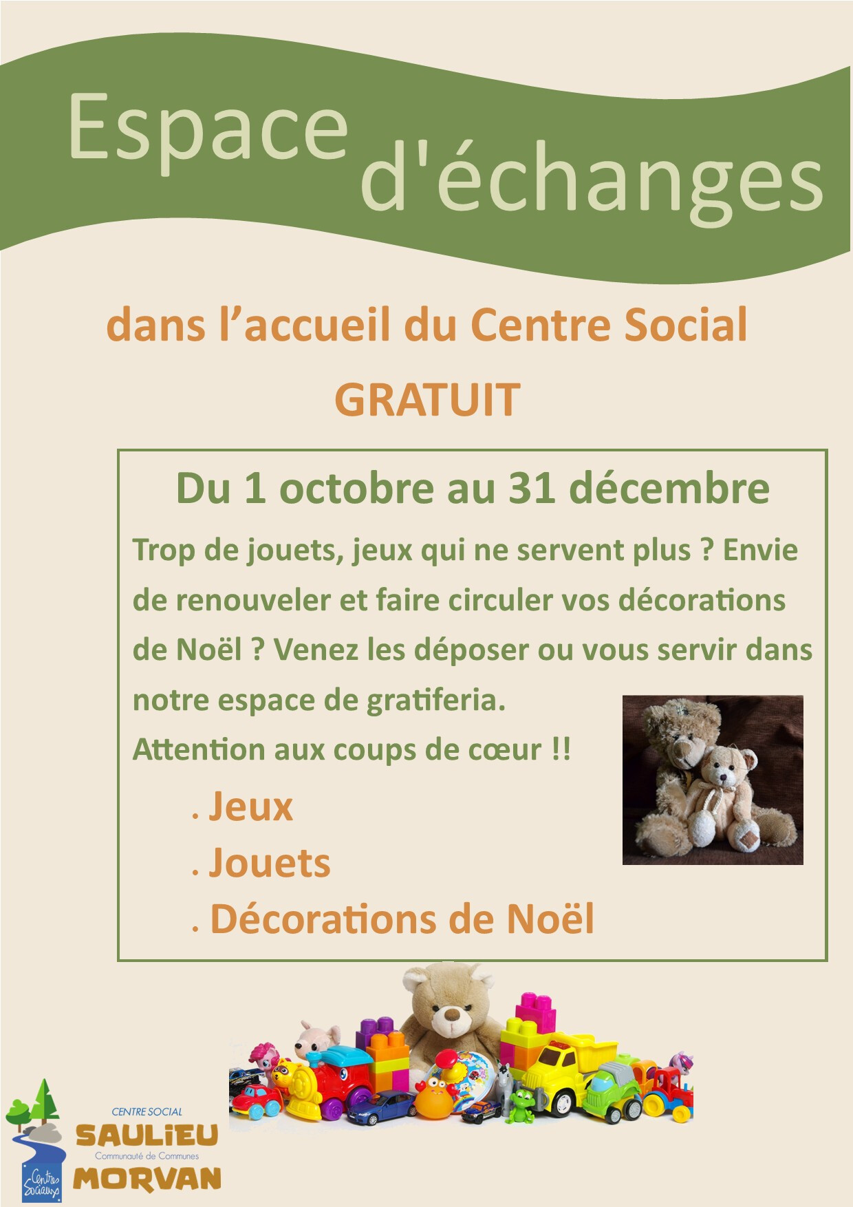 Le Centre Social et France Services seront fermés du Mercredi 24 Décembre au Vendredi 2 janvier inclus.