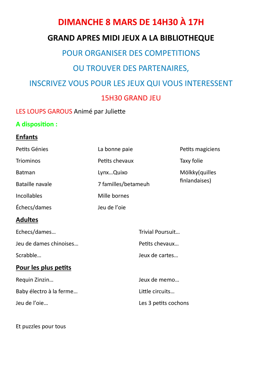 Lundi 23 mars 2026 de 15h30 à 17h30