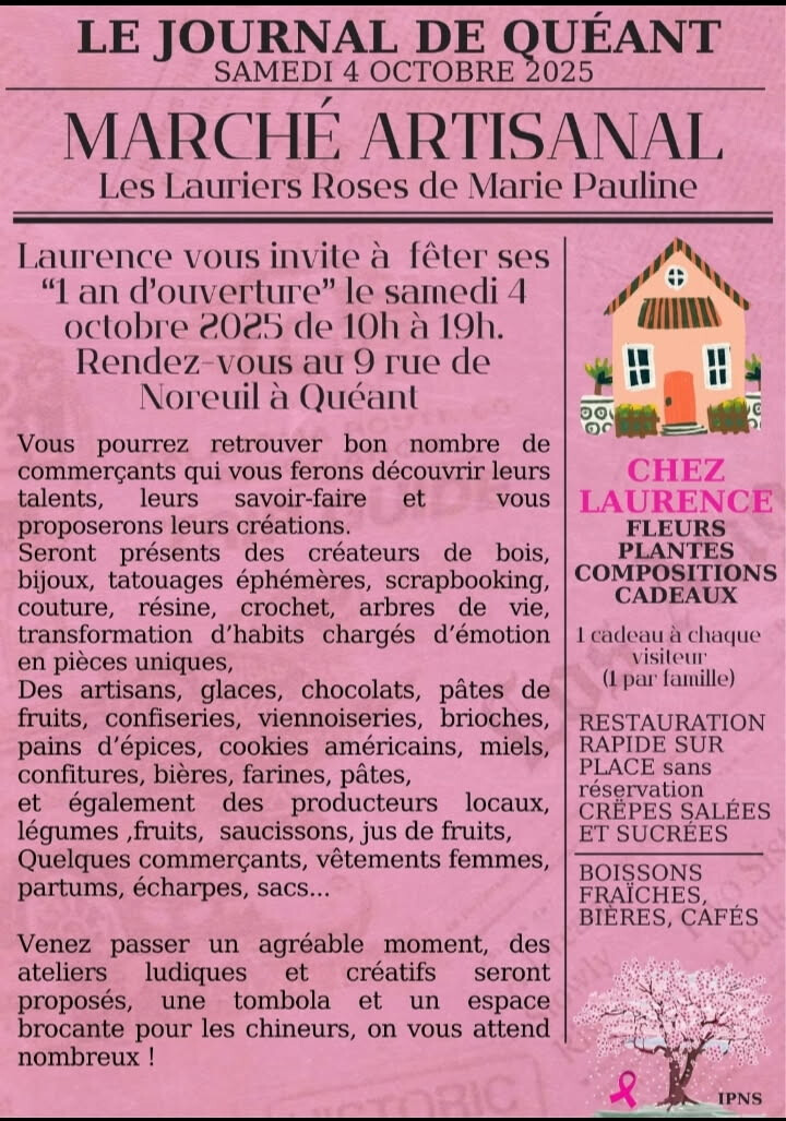 Afin de fêter son anniversaire, Laurence vous donne rendez-vous samedi prochain pour son premier marché artisanale