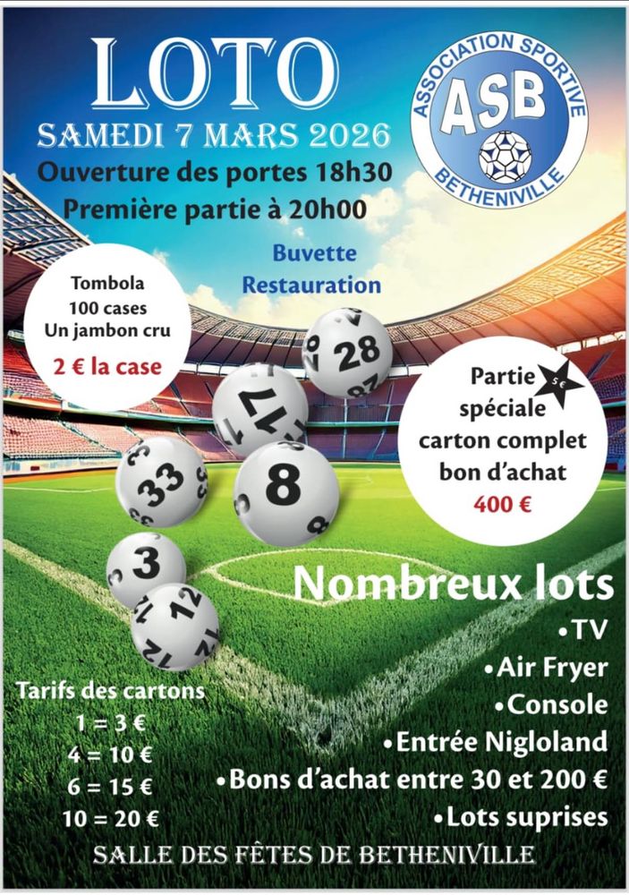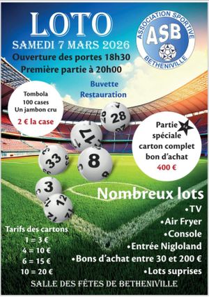 L’ASB organise son loto le 7 mars 2026,