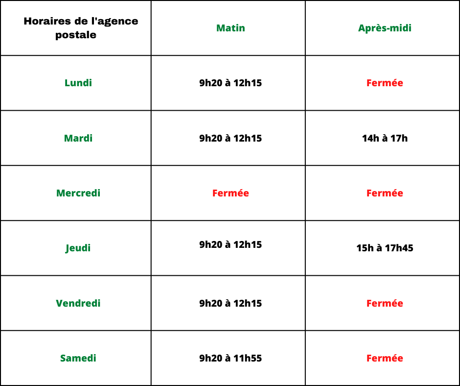 Horaires d'ouverture de la mairie,