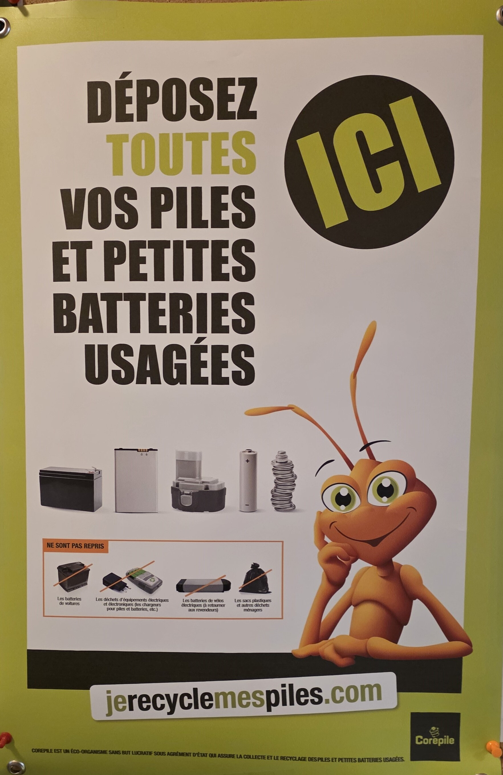 un conteneur pour les déchets électroniques ainsi qu'un conteneur pour les piles et petites batteries usagées.