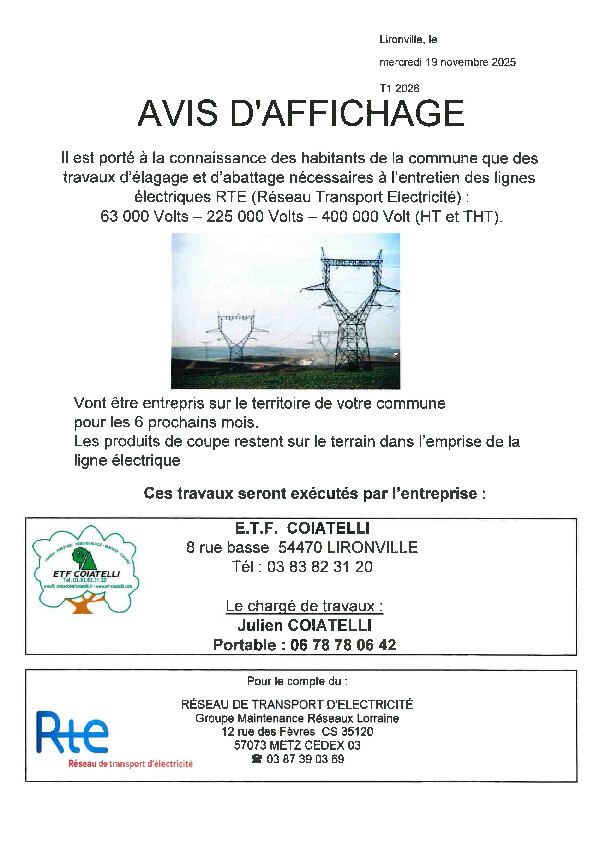 Nous vous informons que des travaux d'élagage et d'abattage vont être entrepris prochainement sur la commune durant les 6 prochains mois :