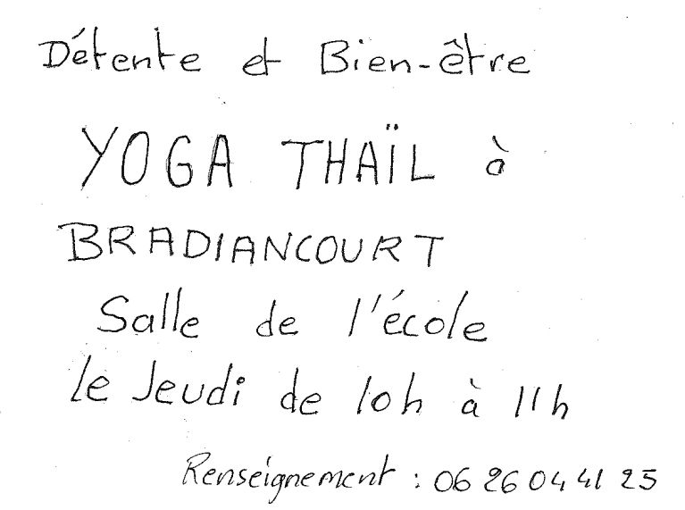 Une nouvelle activité est proposée : Yoga Thaïl, dans la salle de la garderie, le jeudi matin de 10h à 11h