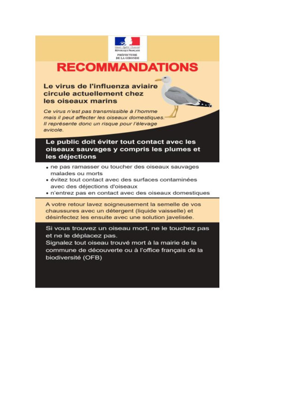 Précautions à prendre face à la grippe aviaire transmise par les oiseaux marins.