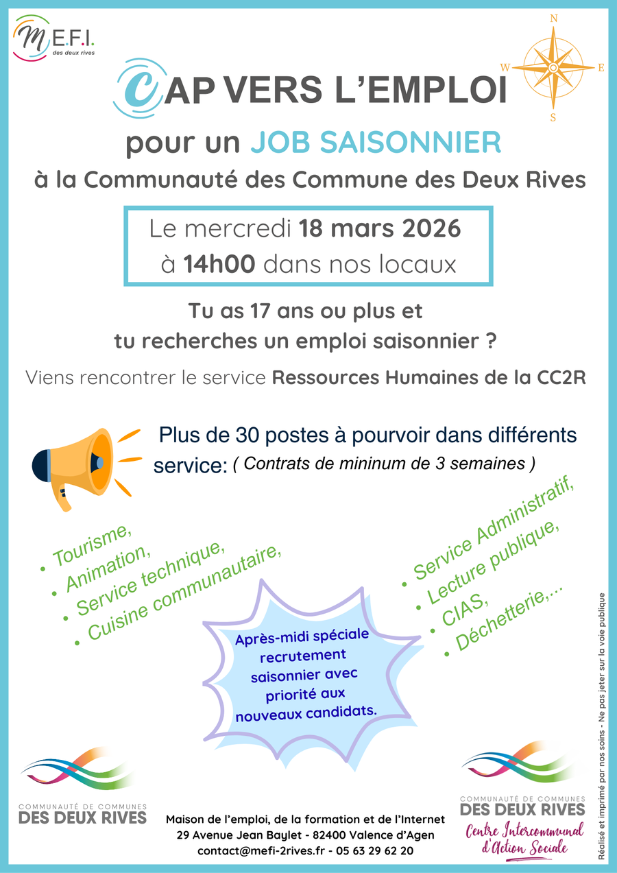 🌟 CAP VERS L’EMPLOI – SPÉCIAL JOBS SAISONNIERS ! 🌟
