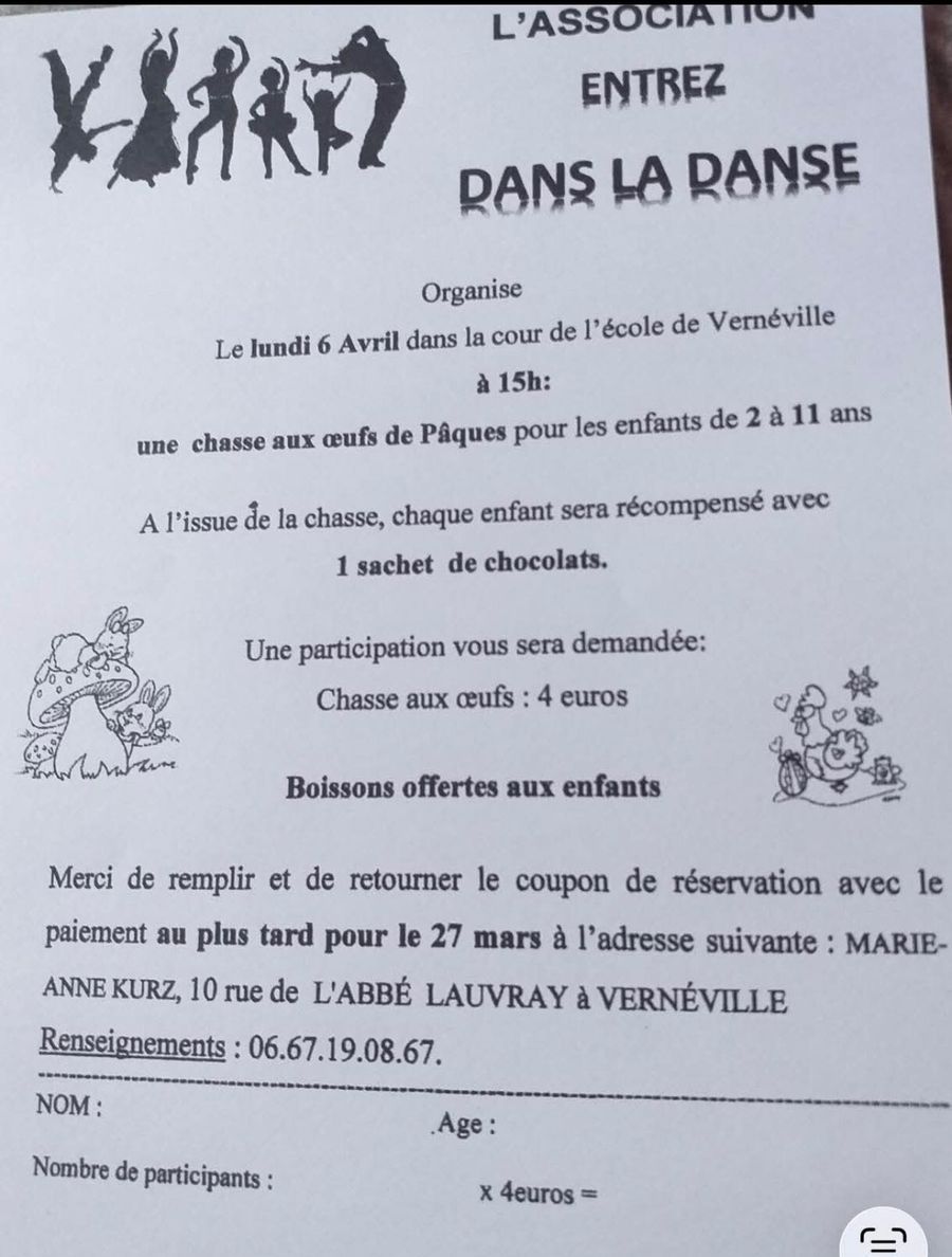 🎭 En raison de la météo, l’association « entrez dans la danse » vous donne rendez-vous directement à la salle des associations dans la cour de l’école.