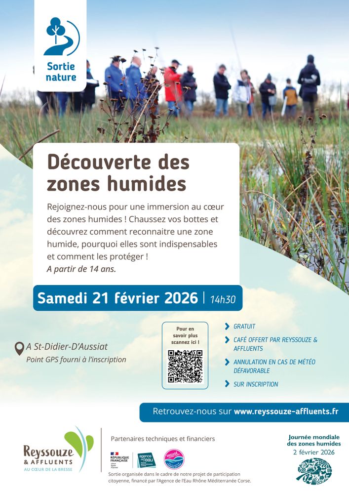 La visite est gratuite sur inscription : https://reyssouze-affluents.fr/page-evenement/decouverte-des-zones-humides-a-st-didier-daussiat/