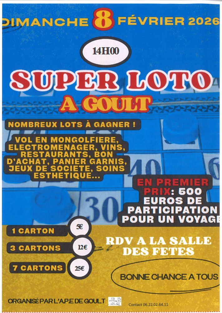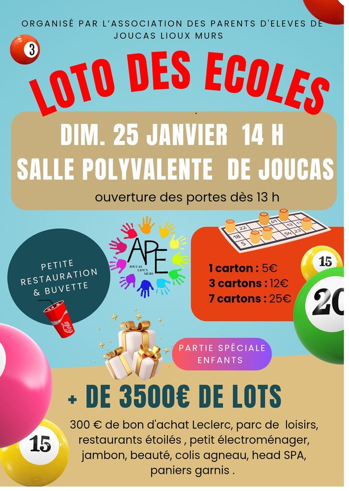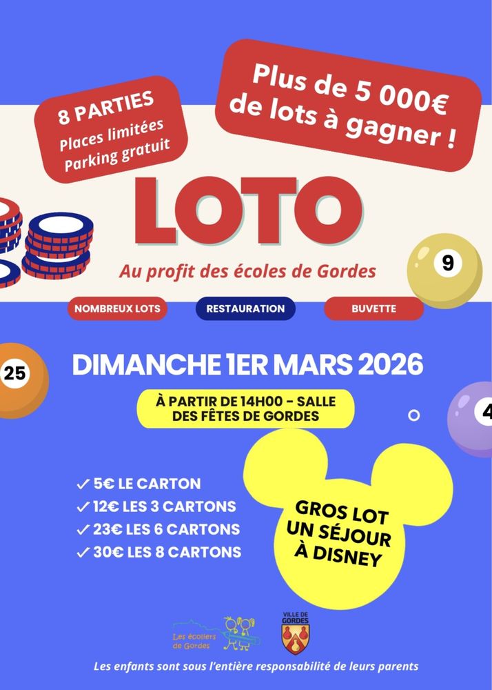L’Association des Écoliers de Gordes a le plaisir de vous inviter à son grand LOTO, qui se tiendra :