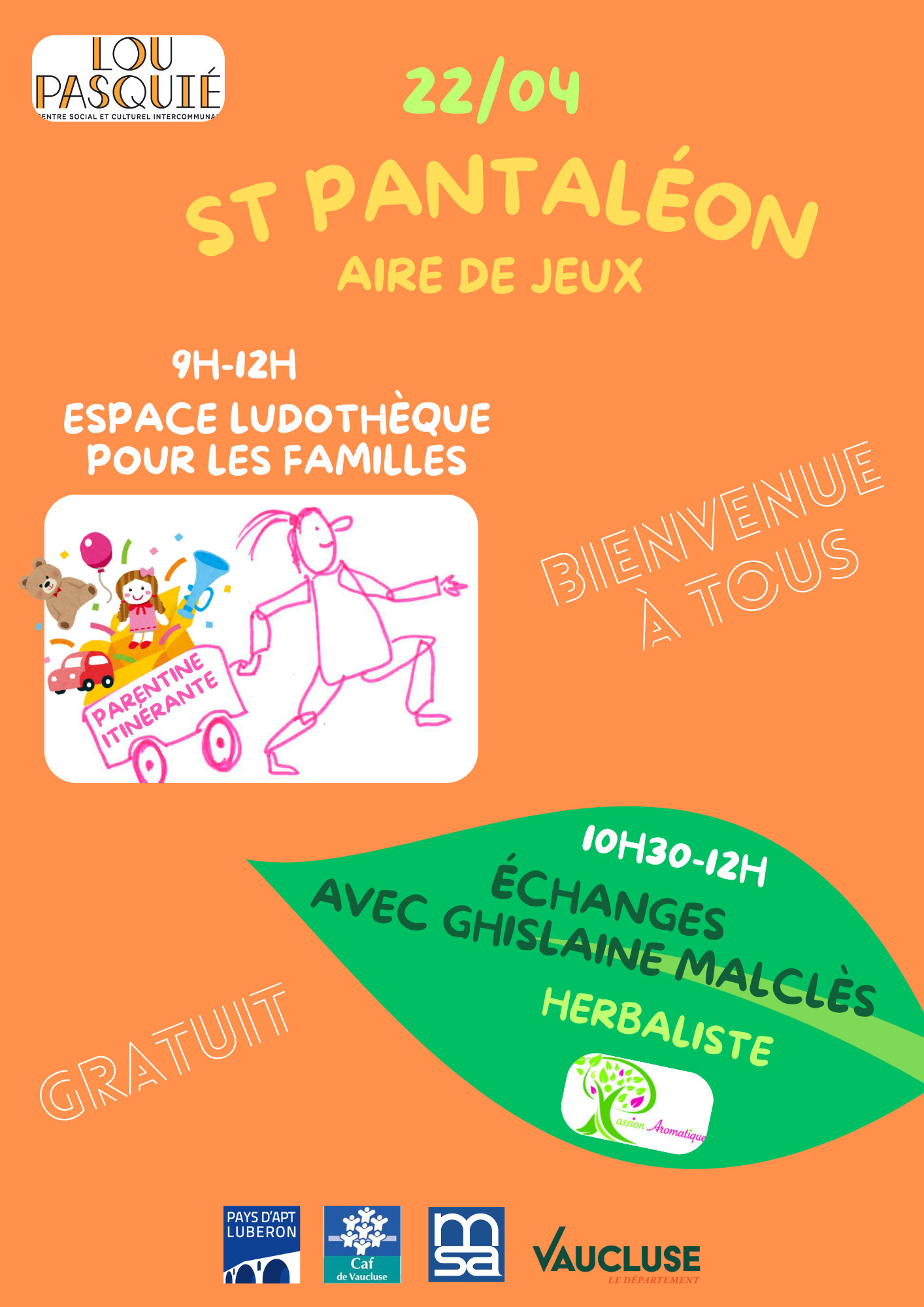 Un espace ludothèque et un espace d'échanges pour avec Ghislaine Malclés, herboriste, vous sont proposés sur l'aire de loisirs située sur le bas du village.