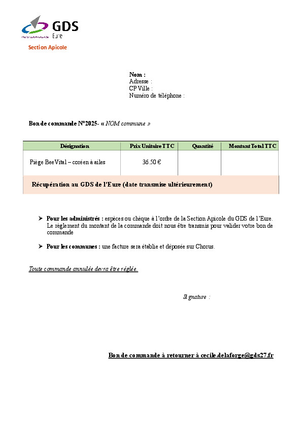 Si vous êtes intéressés, merci de passer compléter le bon de commande joint en mairie avant le 1er décembre 2025.