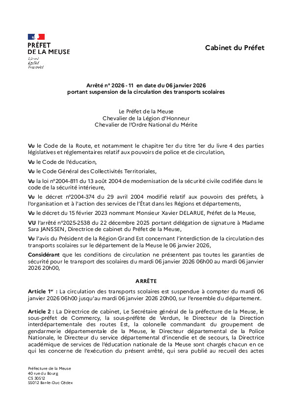 les transports scolaires sont annulés ce mardi 06 janvier 2026