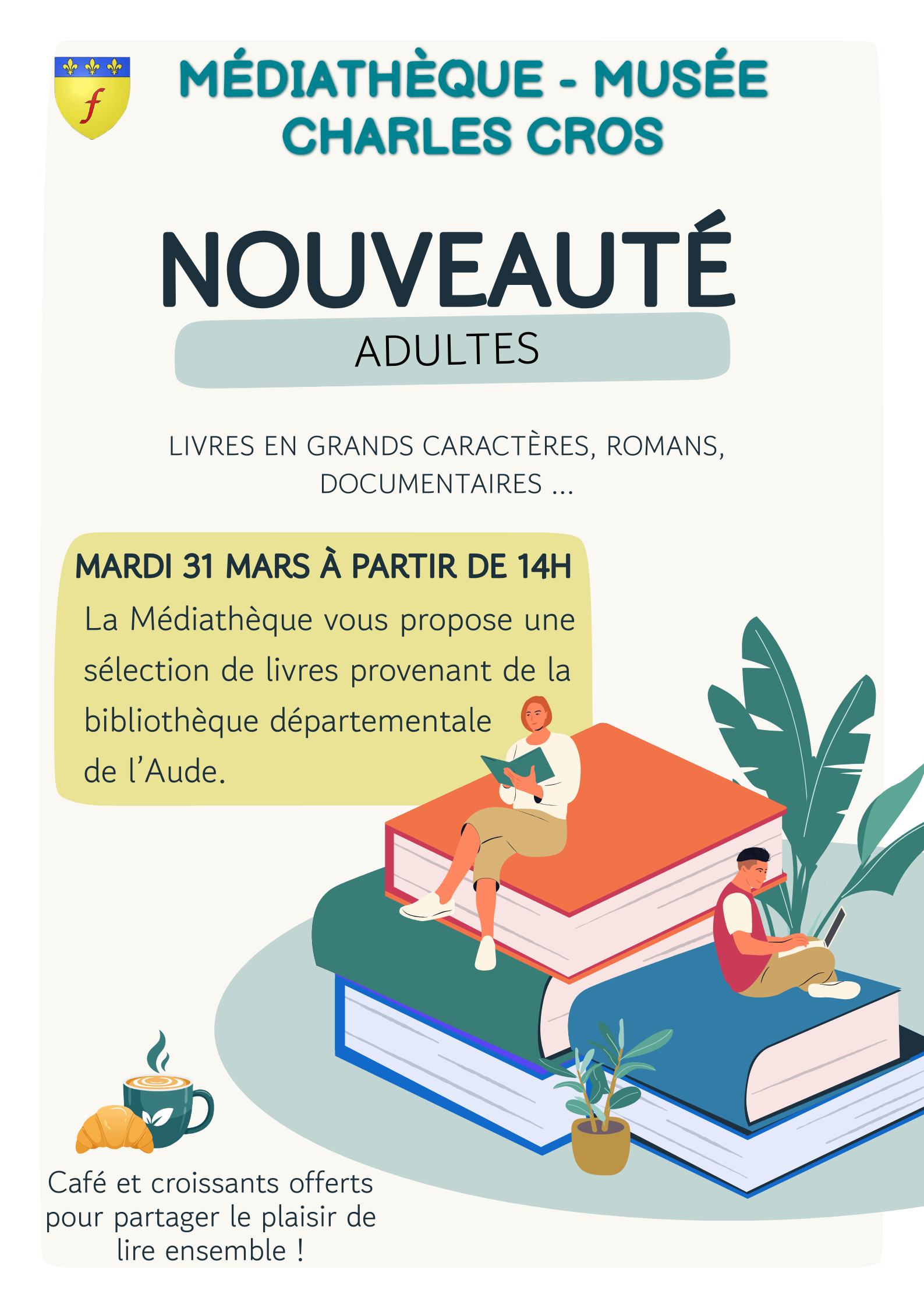 La Médiathèque Musée Charles Cros a le plaisir de vous inviter à un moment convivial autour de ses toutes nouvelles acquisitions adultes, fraîchement arrivées grâce à la Bibliothèque Départementale de l’Aude.
