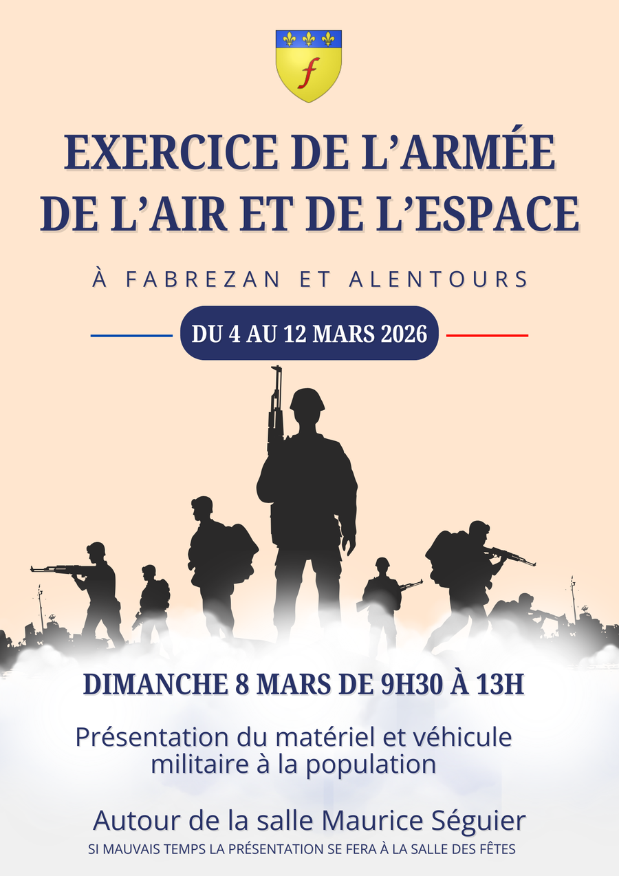 La commune de Fabrezan informe les habitants qu’un exercice militaire se déroulera sur la commune et ses alentours du 4 mars au 12 mars.