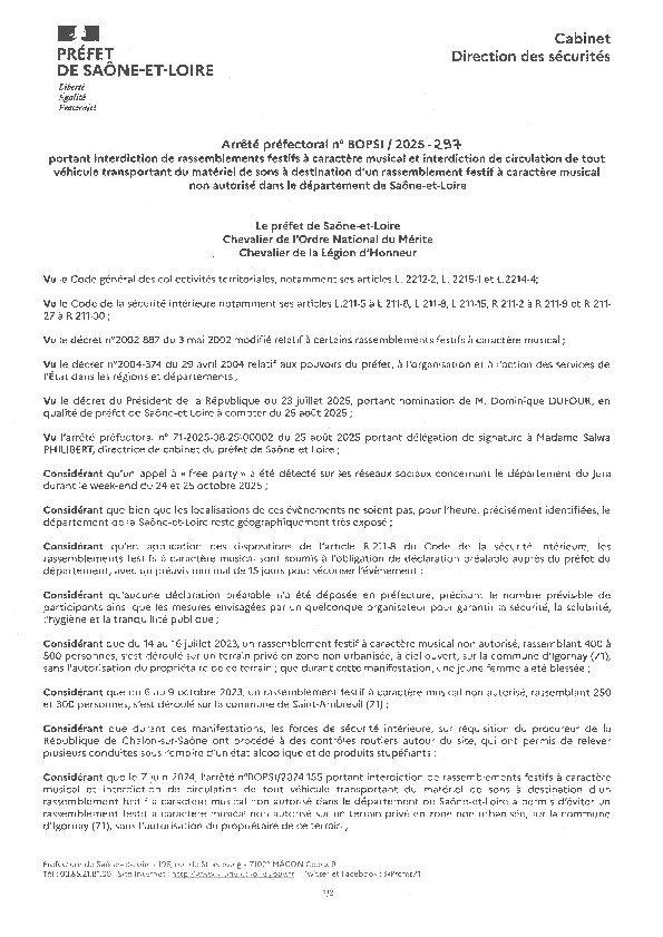 Interdiction "rave party" du 24 au 27 octobre 2025