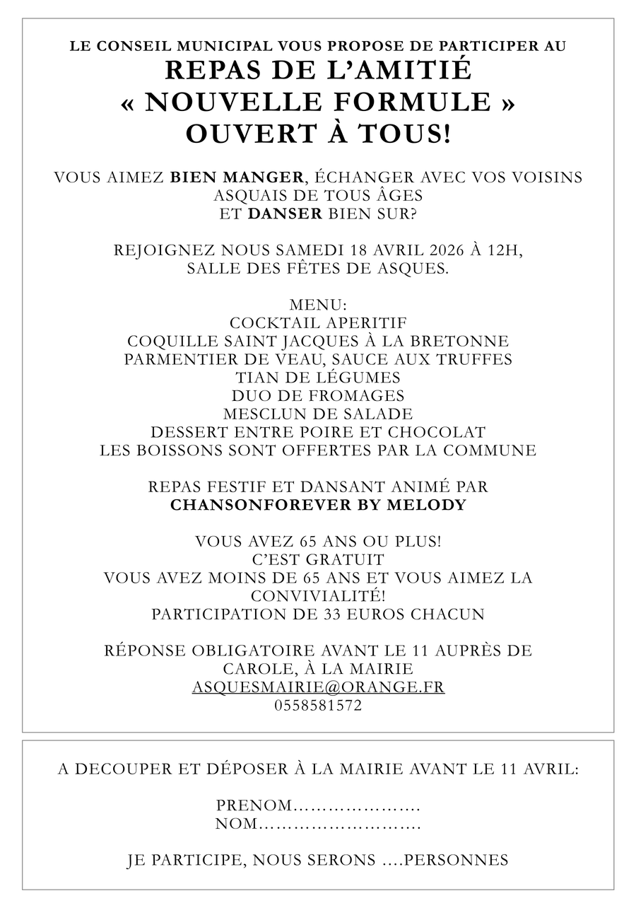 Exceptionnellement, la mairie sera fermée au public vendredi 17 avril après-midi mais ouverte le matin.