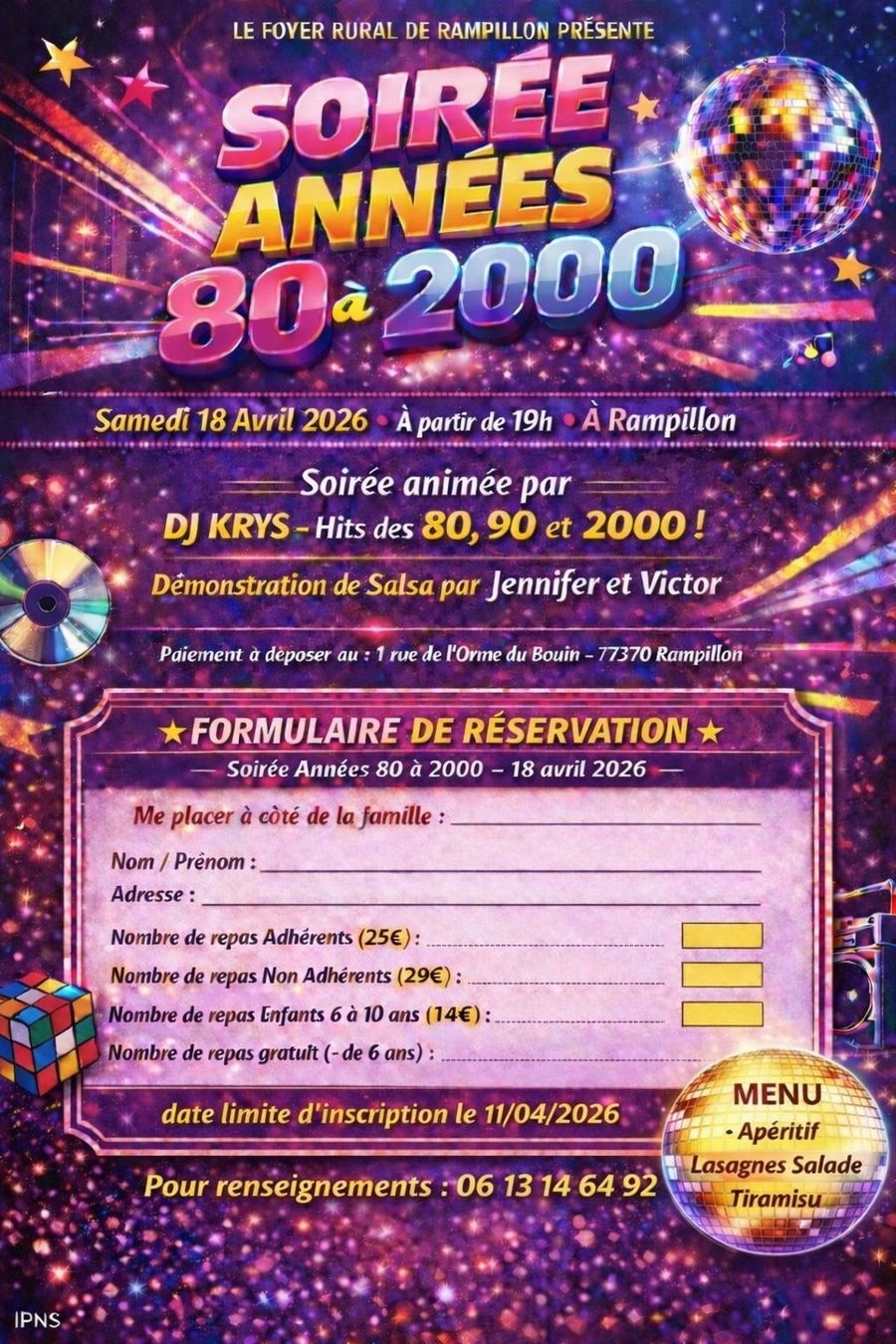 Bonjour, le foyer rural organise une super soirée le 18 avril prochain.