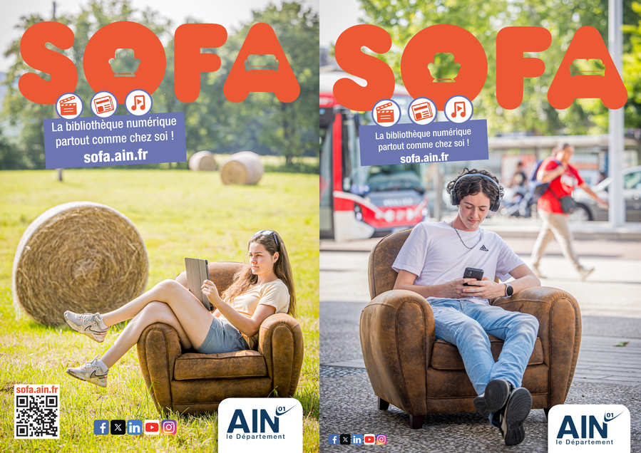 Rendez-vous sur sofa.ain.fr → Si vous habitez l’Ain et que vous avez plus de 15 ans, vous pouvez directement créer un compte test gratuit pendant 3 mois → Vous pouvez aussi vous rendre dans une des bibliothèques du territoire pour vous inscrire (avec autorisation parentale pour les moins de 15 ans)