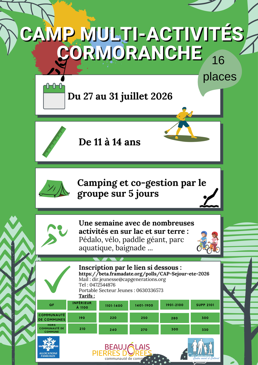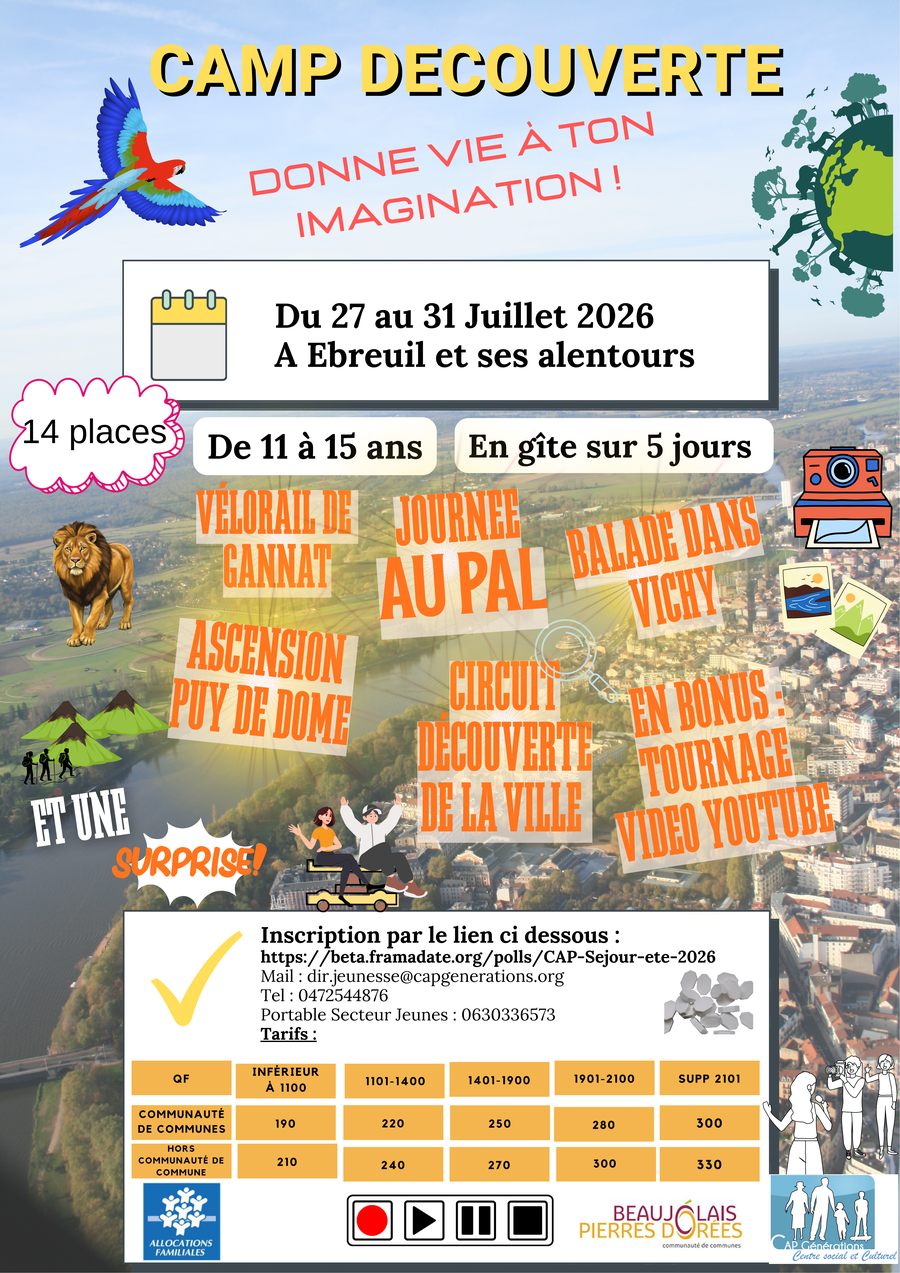Dates d’inscriptions UNIQUEMENT des camps et des stages : du 19/5 à 9h au 21/5 à 20h réservé aux habitants de la Communauté de Communes.