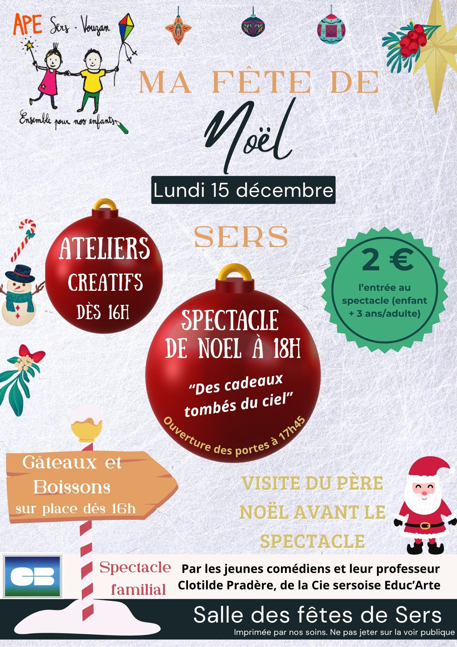 Les élèves comédiens de l'atelier théâtre sersois de Clotilde Pradère et l'Association des Parents d'Elèves des écoles de Sers et Vouzan sont heureux de vous présenter "Des cadeaux tombés du ciel", un spectacle écrit et mis en scène par Clotilde Pradère et joué par Alice, Elia, Elya, Léo, Lylou, Mahé Nathanaël et Clotilde.