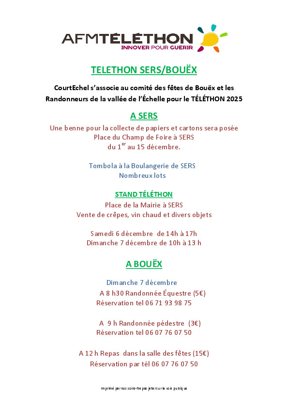 Le lundi 15 décembre à 18h à la salle des fêtes de Sers