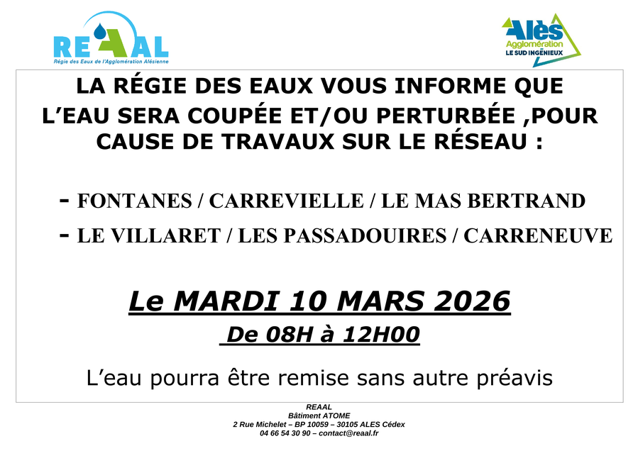 Travaux REAAL, réseau d'eau secteur Mandajors